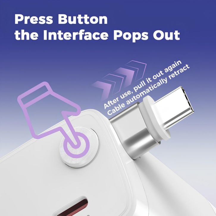 UPLU PD 30w Charger Fast Charging GaN Pro Built in Retractable Kabel USB Type C