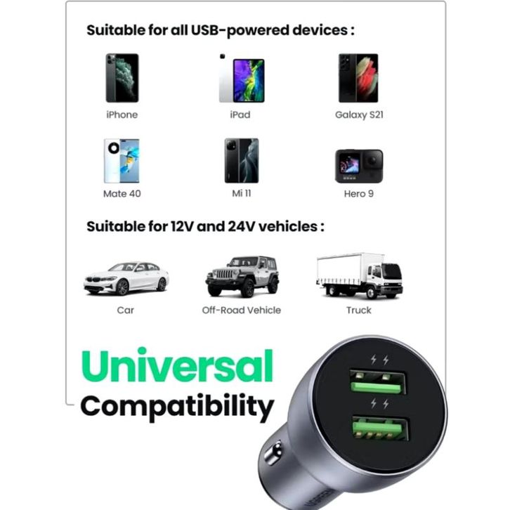UGREEN Car Charger Mobil Fast Charging Dual USB Quick Charge 3.0 36W