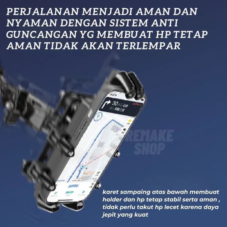 GUB P60 Phone Holder HP Motor GPS Full Besi Alumunium Alloy Anti Getar Guncangan Rotasi 360 Derajat Flexible di Stang S