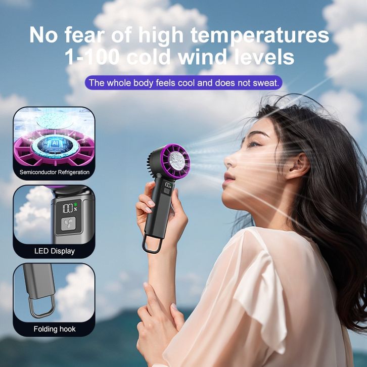 Actual【】Kipas Angin Mini Portable Semikonduktor 100 Super Speed Bahan loggam Angin Super Kencang LED Display-USB Rechar