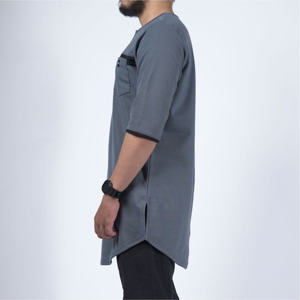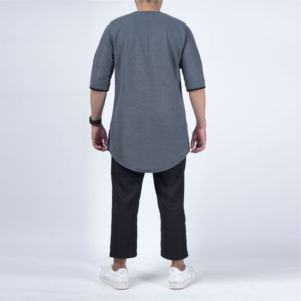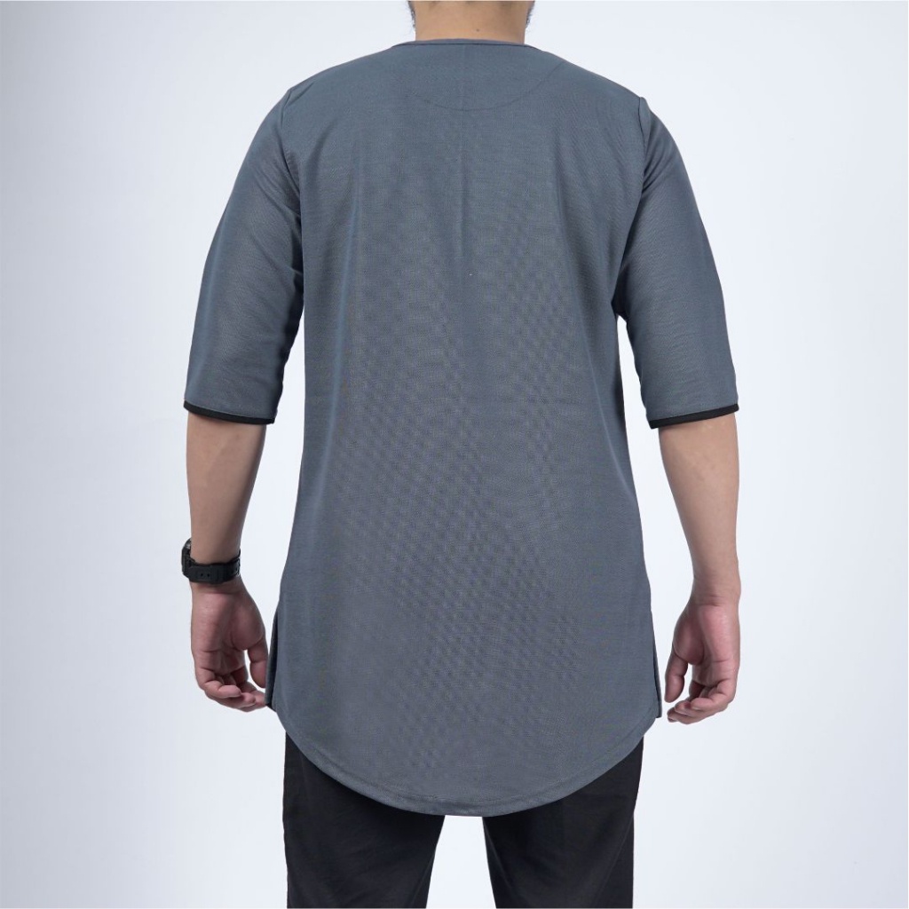 KHOIRUMMAH Kurta Umair Dewasa - Baju Kaos Muslim Pria Dewasa Lengan 3/4 - Grey