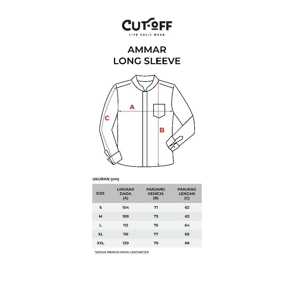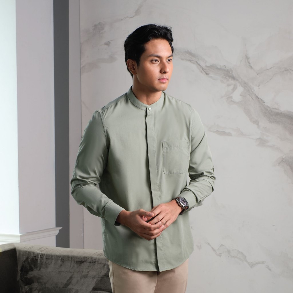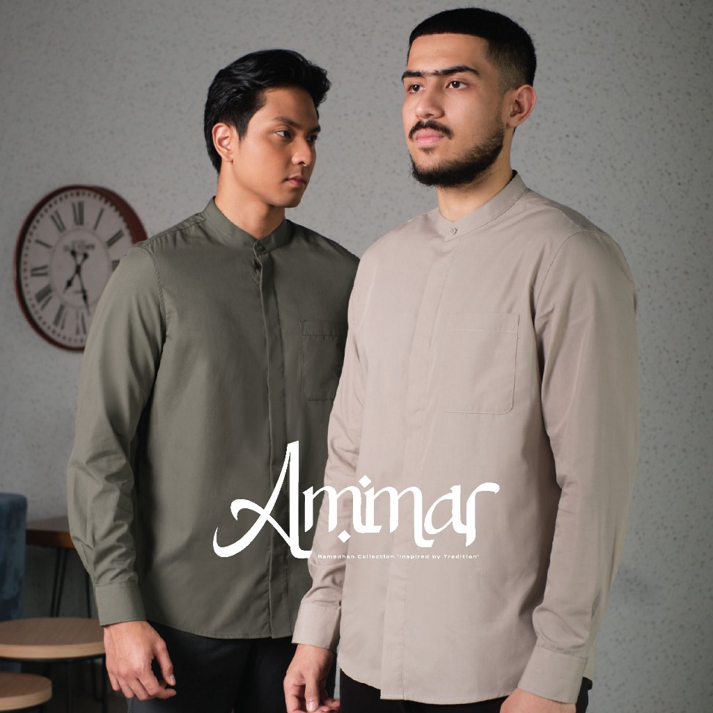 CUTOFF Ammar Collarless Shirt Kemeja Koko Cotton Formal Basic Polos Pria Lengan Panjang