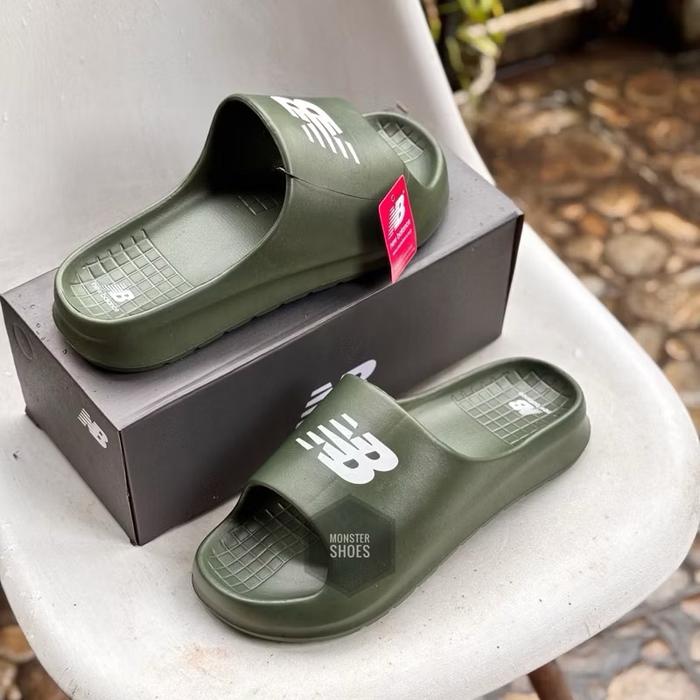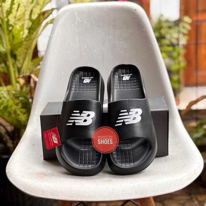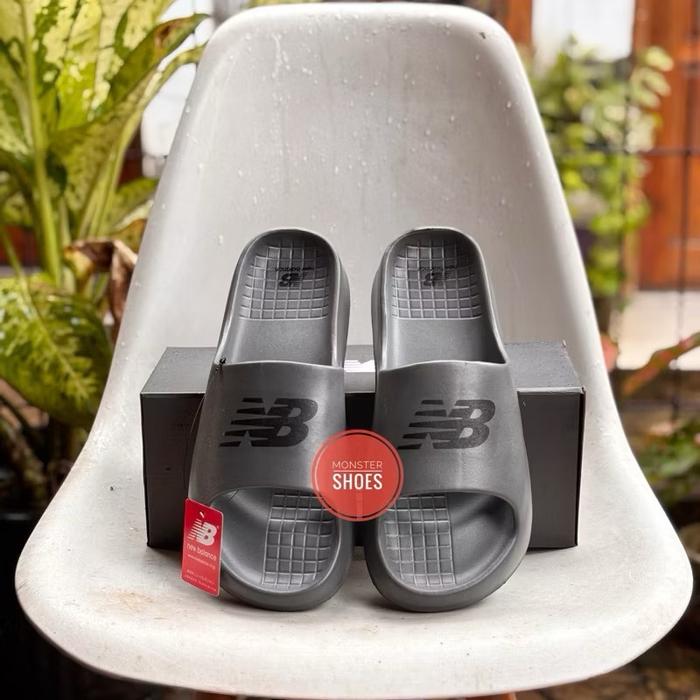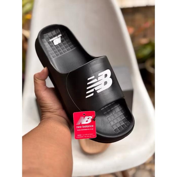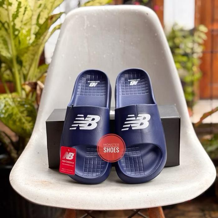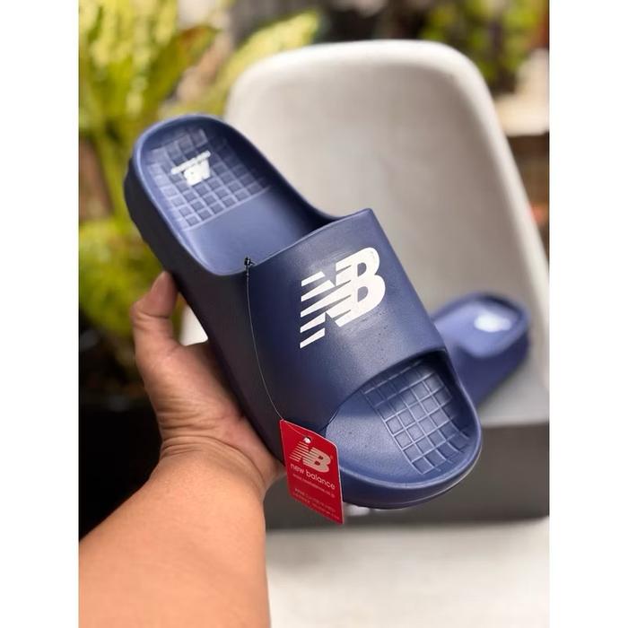 TANPA DP SANDAL SLOP PRIA NEW BALANCE ORIGINAL TERBARU SANDAL SLIDES SLIP ON NB FULL KARET ANTI SLIP UNISEXBIRU 39