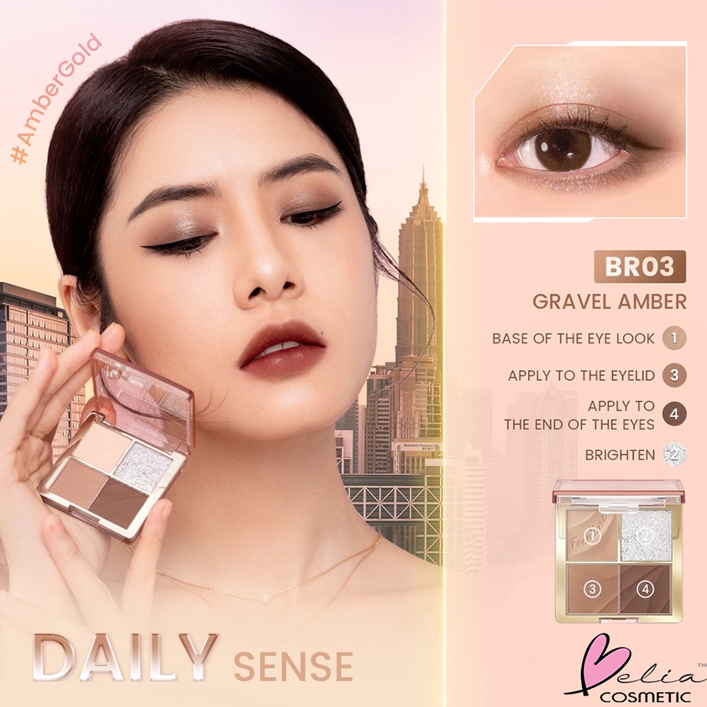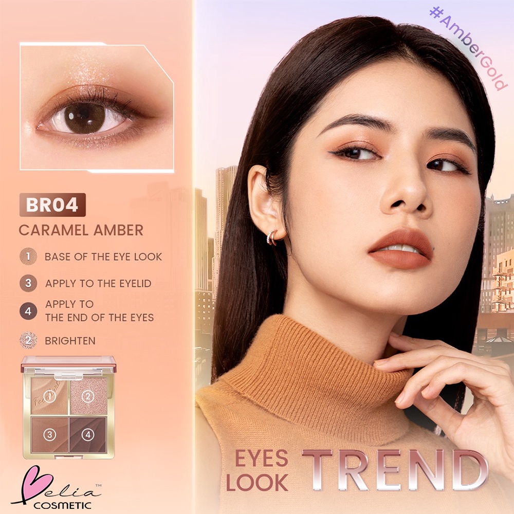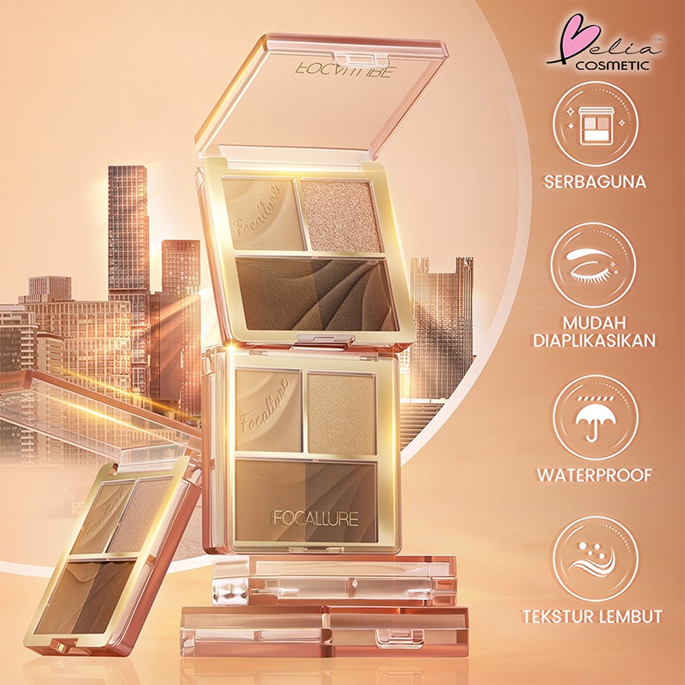 ❤ BELIA ❤ FOCALLURE 4 Pan Eyeshadow Palette FA314 | Shimmer Eyeshadow Palette 4 Shades High Pigment #AmberGold | BPOM