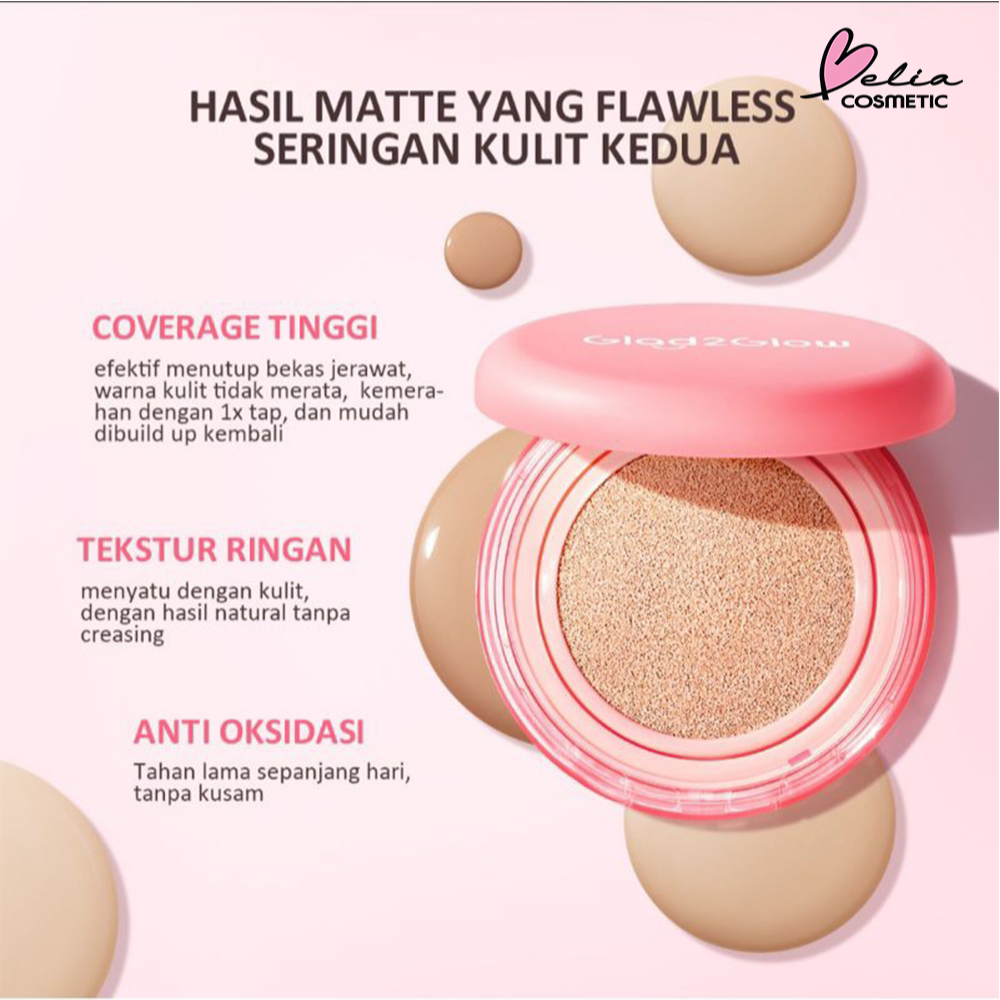 ❤ BELIA ❤ GLAD2GLOW Perfect Cover Cushion | Full Refill | Infused Skincare | High coverage | Transfer-proof