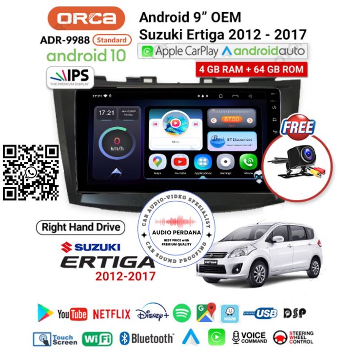Head Unit Android Auto CarPlay 9 inch Orca 9988 Ertiga-Swift 2012-2017 Ram 4gb Rom 64gb