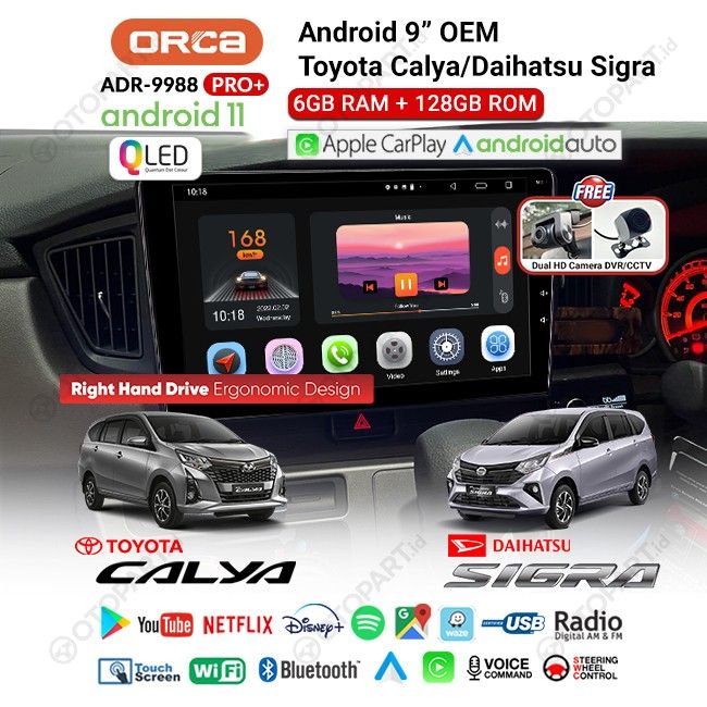 Head unit Calya/Sigra ORCA 9988 PRO+ DVR Ram 6gb Rom 128GB 9 Inch QLED