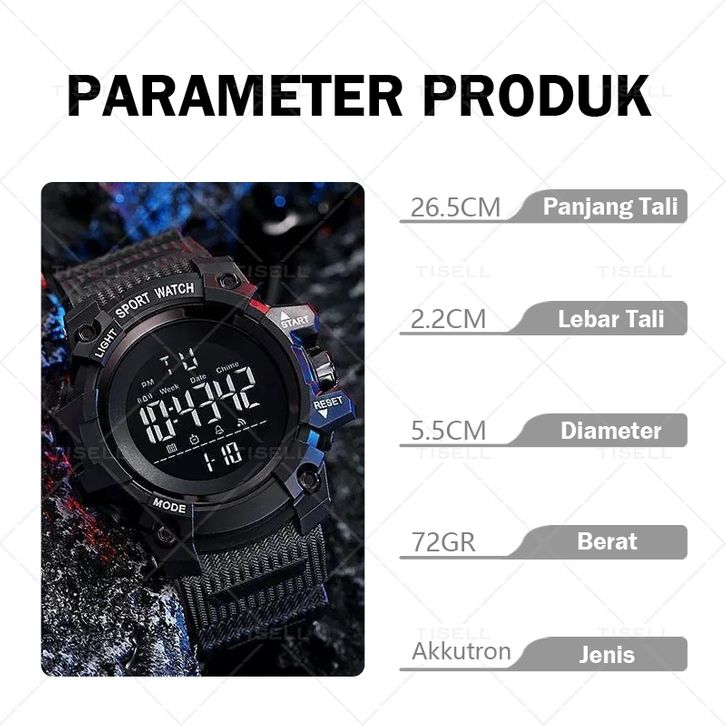PROMO Tisell - Jam Tangan Pria Waterproof Bahan Strap Rubber Jam Cowok Digital Olahraga Gaya Simple Sport Watch