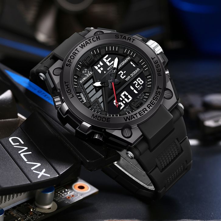 TERMURAH Sunlifex Jam Tangan Pria D004 Digital&Analog Multifungsi Olahraga Tali Silikon Jam Tangan Cowok esock