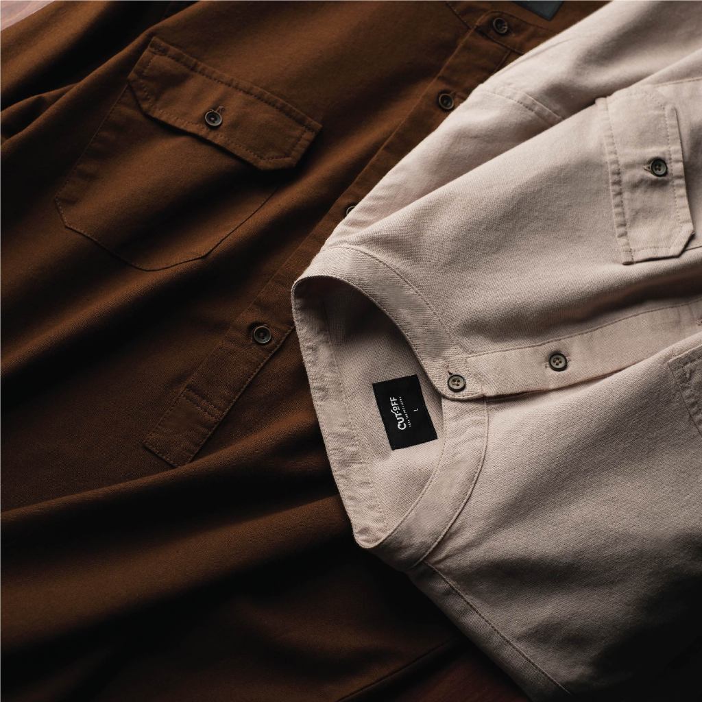 CUTOFF Yazeer Collarless Shirt Kemeja Koko Cotton Rami Formal Basic Polos Pria Lengan Panjang