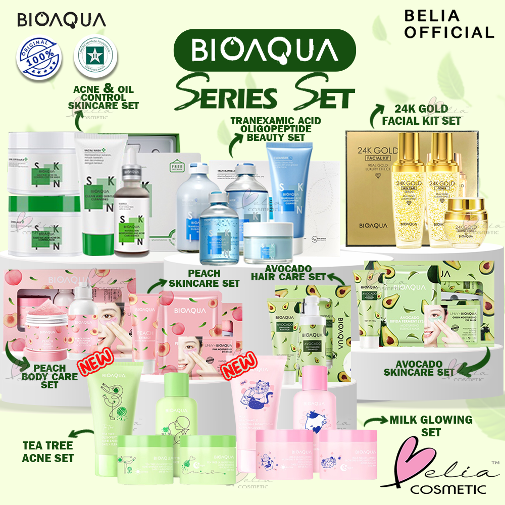 ❤ BELIA ❤ BIOAQUA Skincare Set | Body Care Series Set | Hair Care Series Set | Skin Care | Avocado | Peach | SKIN Acne Care & Oil | Tranexamic Acid Oligopeptide Beauty Set | BOX Set | BPOM