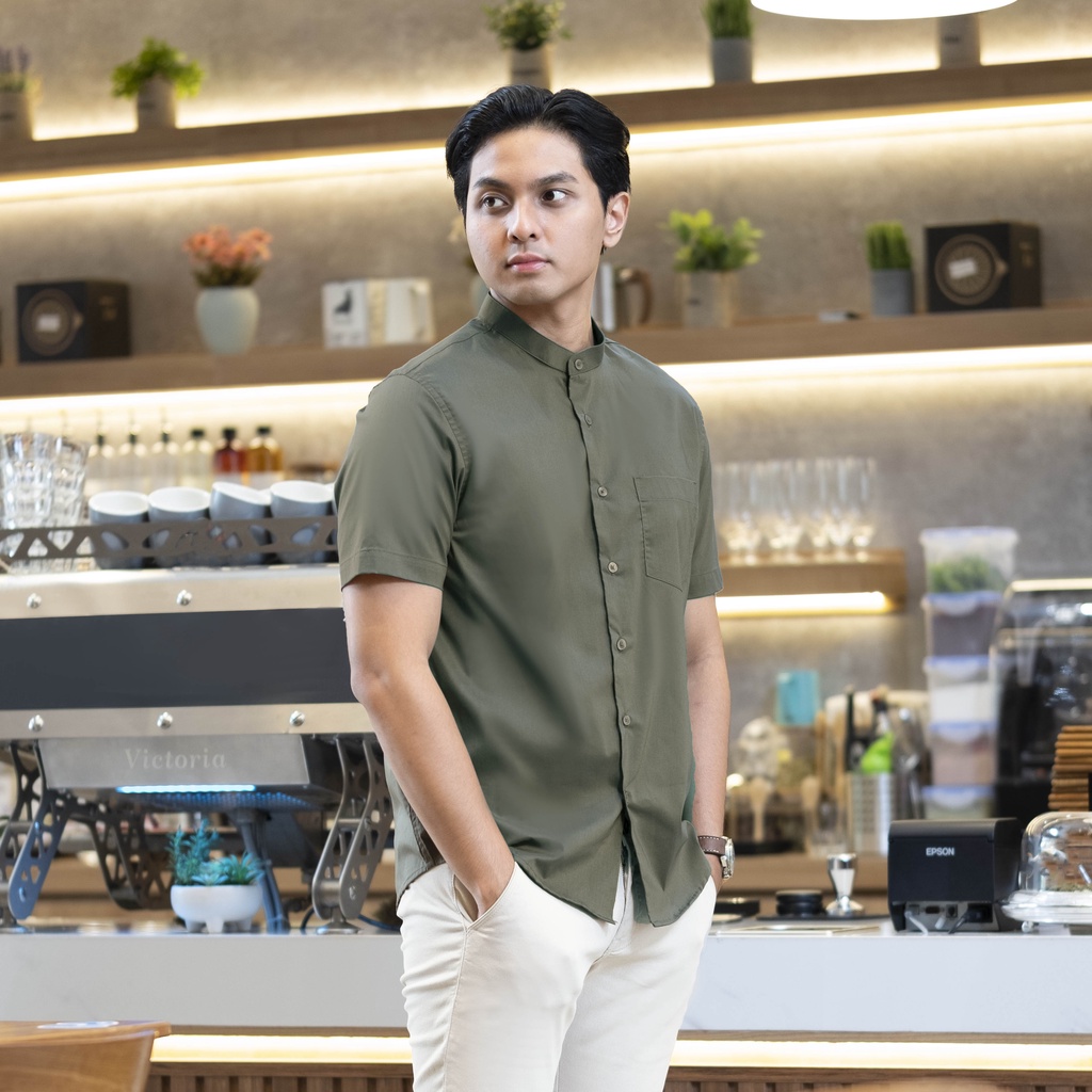 CUTOFF Zeon Collarless Shirt Kemeja Koko Basic Polos Pendek Stretch
