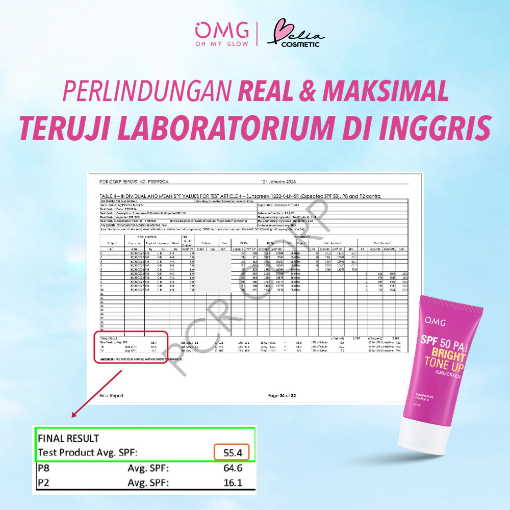 ❤ BELIA ❤ OMG Oh My Glow Bright Tone Up UV Barrier Sunscreen SPF 50 PA++ 25ml | Mencerahkan