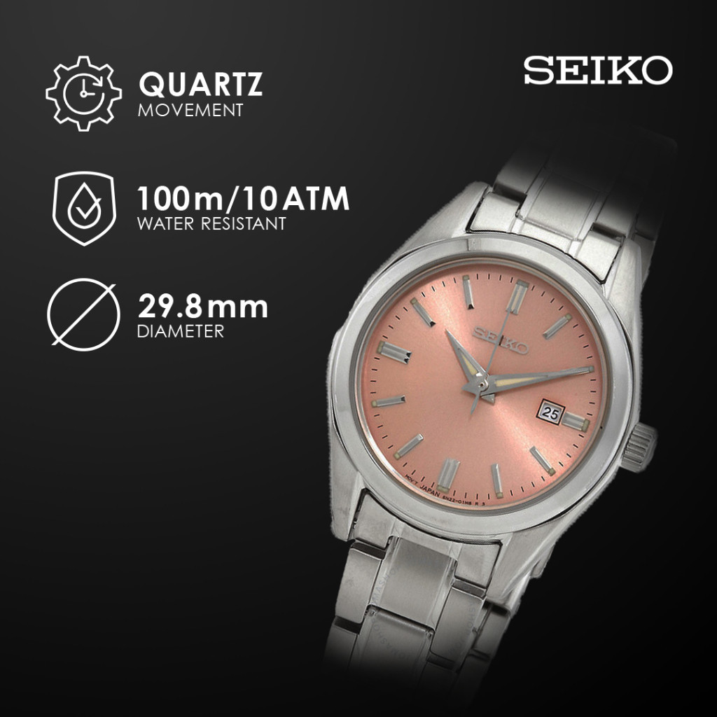 Jam Tangan Wanita Seiko SUR529P1 SUR529 Salmon Sapphire Quartz Stainless Original