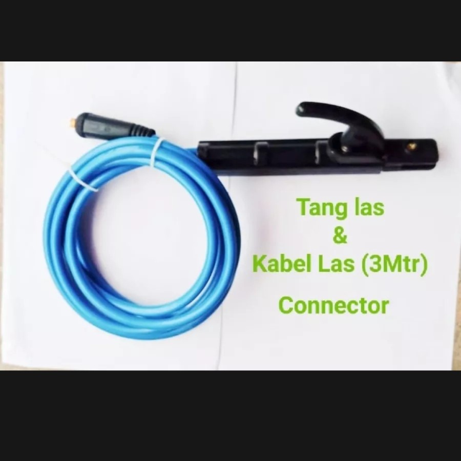 Paket Set Stang Las 200A 3 Meter & Tang Massa 300A 2 Meter Lengkap Kabel Dengan Konektor Panjang Total 5 Meter Biru Untu