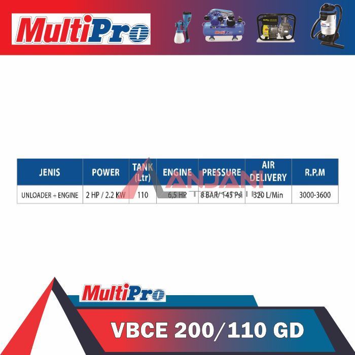 MULTIPRO VBCE 200/110 HS-SW MESIN KOMPRESOR ANGIN BENSIN 2 HP COMPRESSOR ENGINE 2HP VBCE200 PROMO