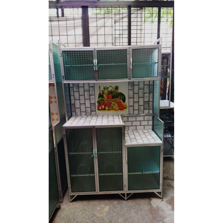 Lemari Piring Rak Piring Kaca 3 Pintu Alas Keramik Magic Buah Seng KHUSUS BOGOR KURIR TOKO