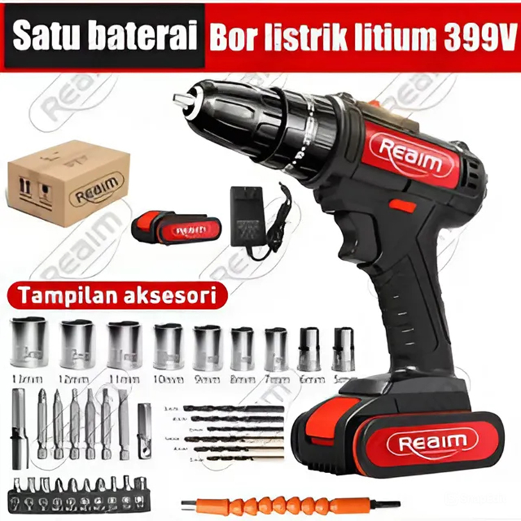 Mesin Bor Baterai 2 in 1 Cordless Drill 399VF Mesin Bor Impact Drill Set Bor Tanpa Kabel Untuk besi tembok Beton kayu