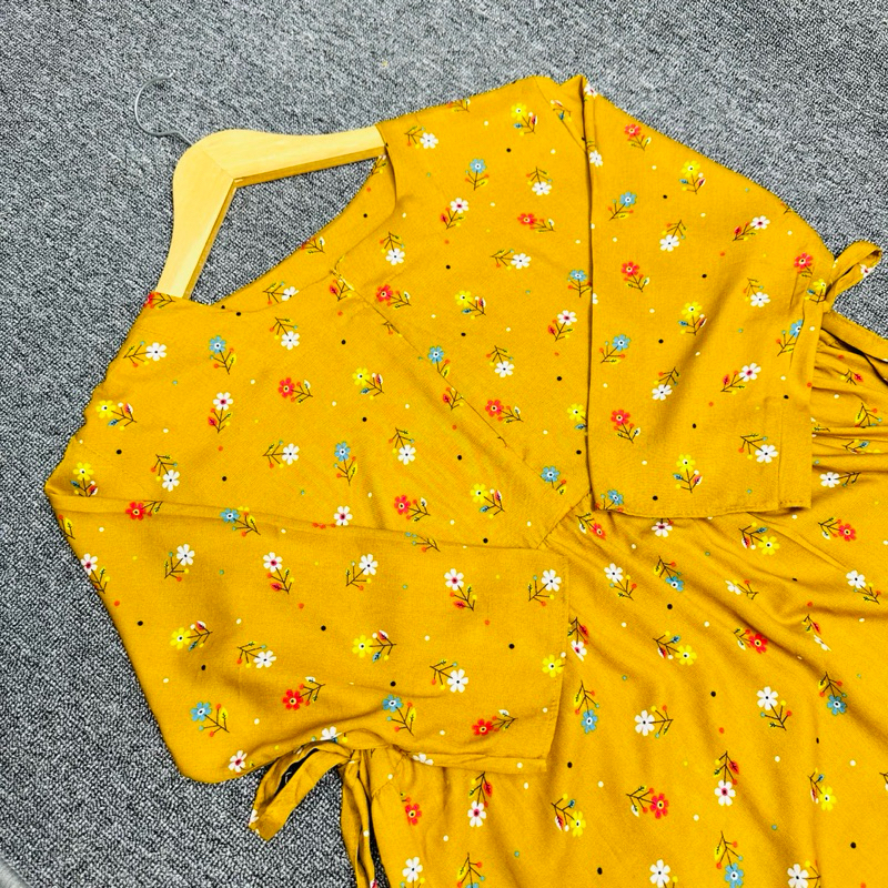 Levi Dress Ruffle Daster Tangan 3/4 Rayon Motif Rempel Dada Terbaru