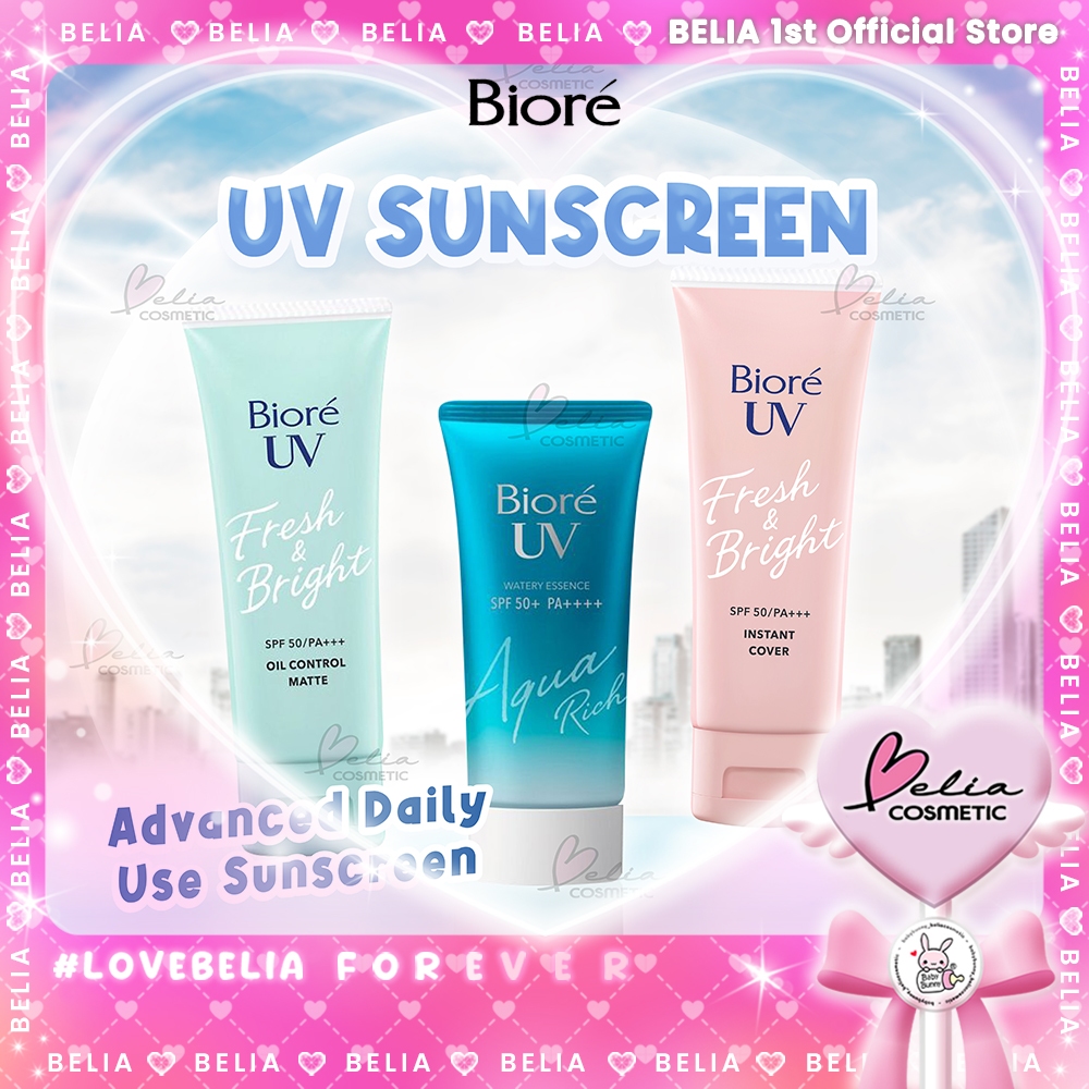 ❤ BELIA ❤ BIORE UV Sunscreen Series | Aqua Rich Watery Essence SPF 50+ PA++++ | Fresh & Bright SPF 50 PA+++