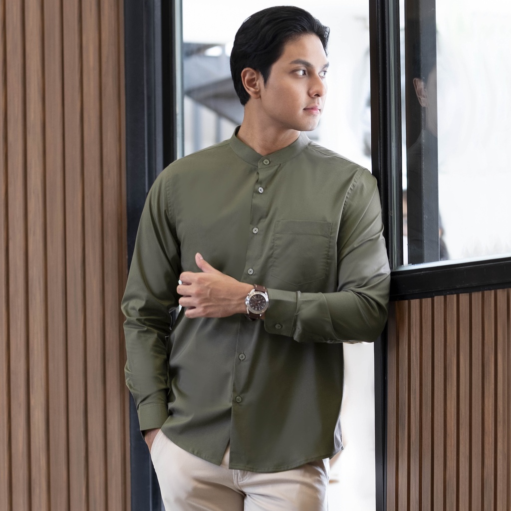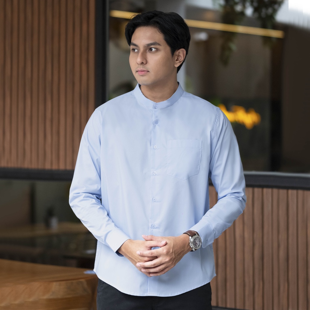 CUTOFF Zeon Collarless Shirt Kemeja Koko Basic Polos Panjang Stretch
