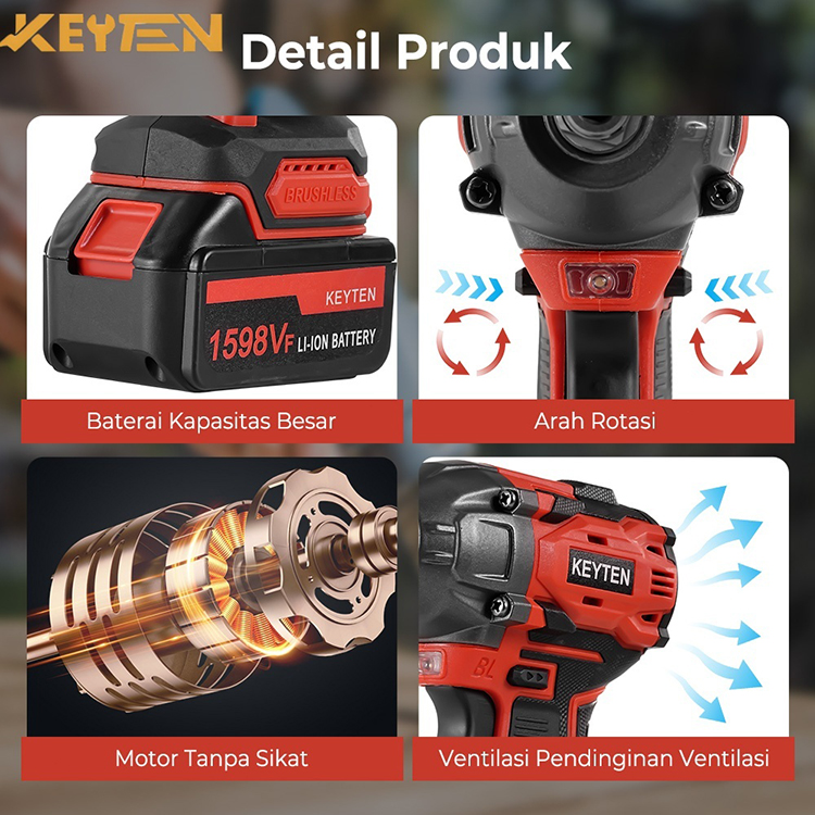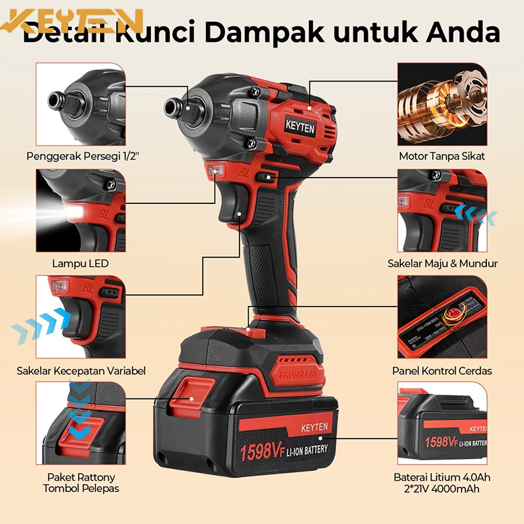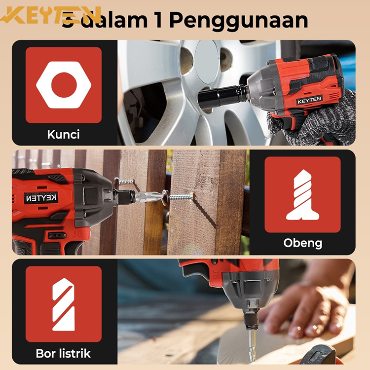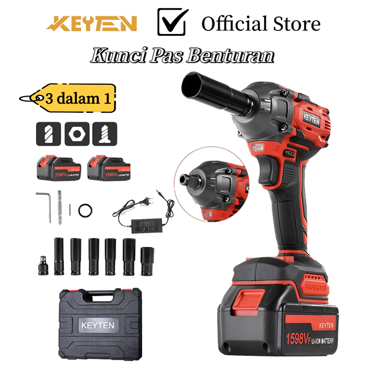 KEYTEN Cordless Impact Wrench 3 in 1 Brushless impact baterai wrench Mobil Mesin Bor Untuk Baut Rechargeable Torsi Besar