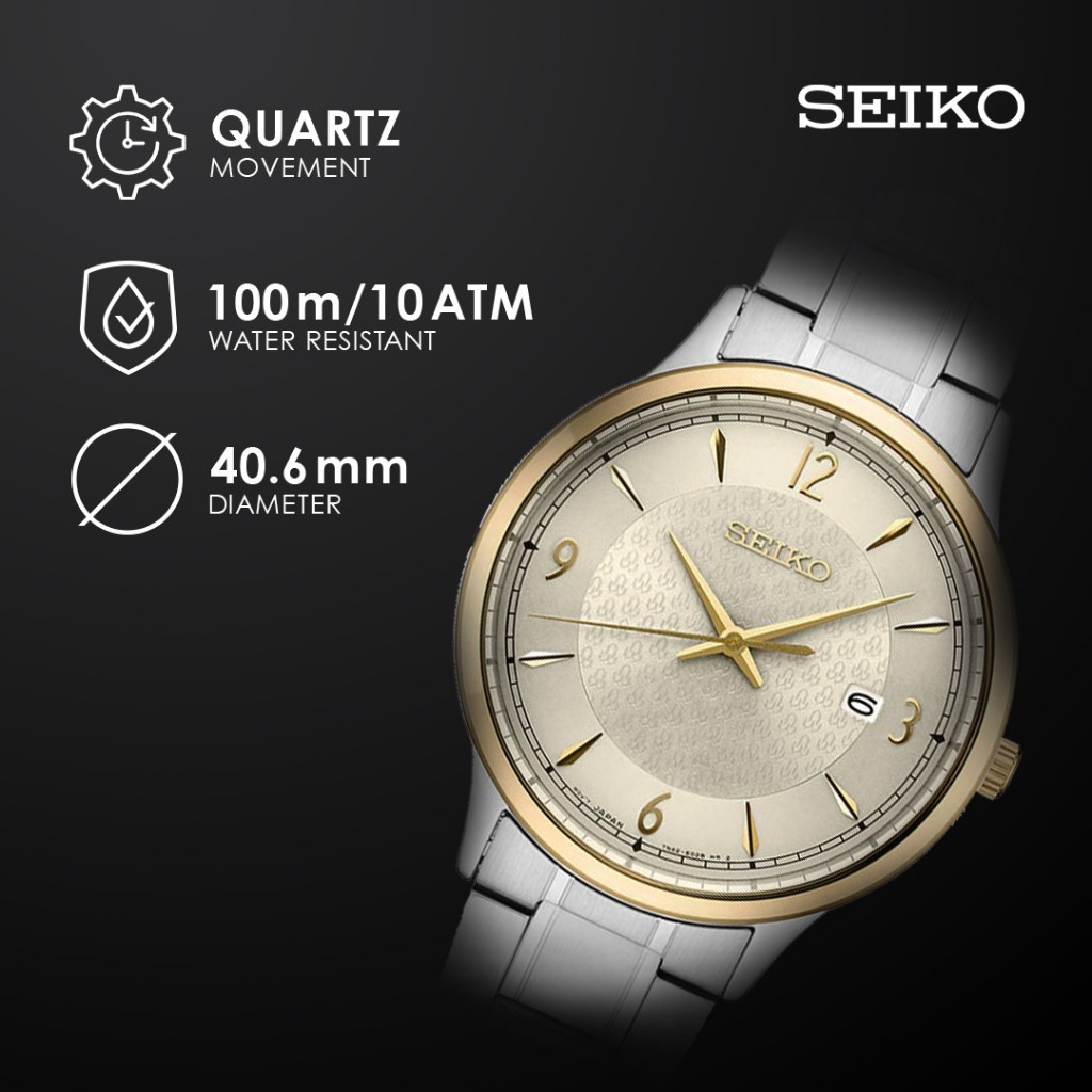 Jam Tangan Pria Seiko Classic SGEH92P1 Men Gold Dial Dual Tone Stainless Steel Strap SGEH92 Original