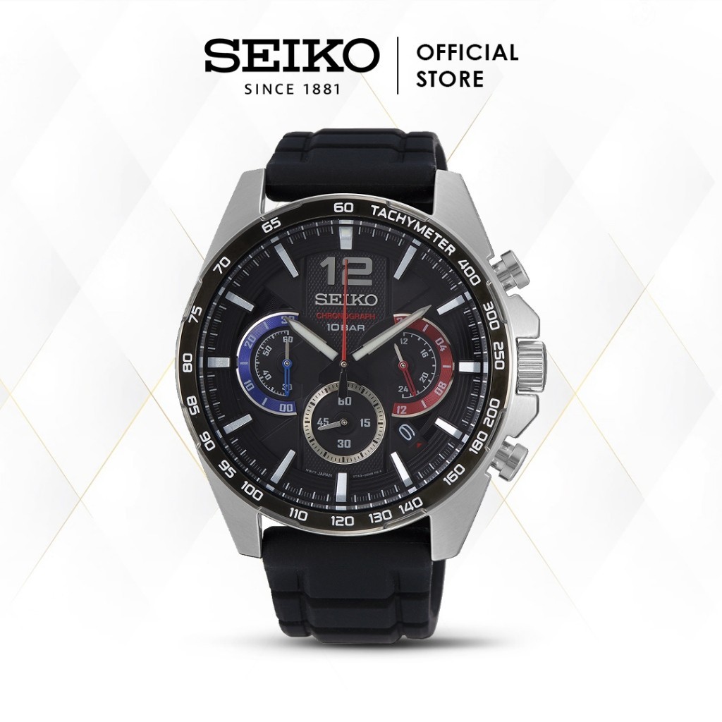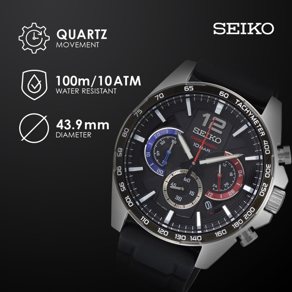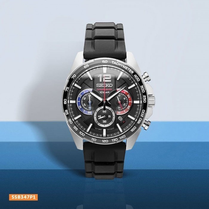 Jam Tangan Pria Seiko Chronograph SSB347P1 Black Rubber Original