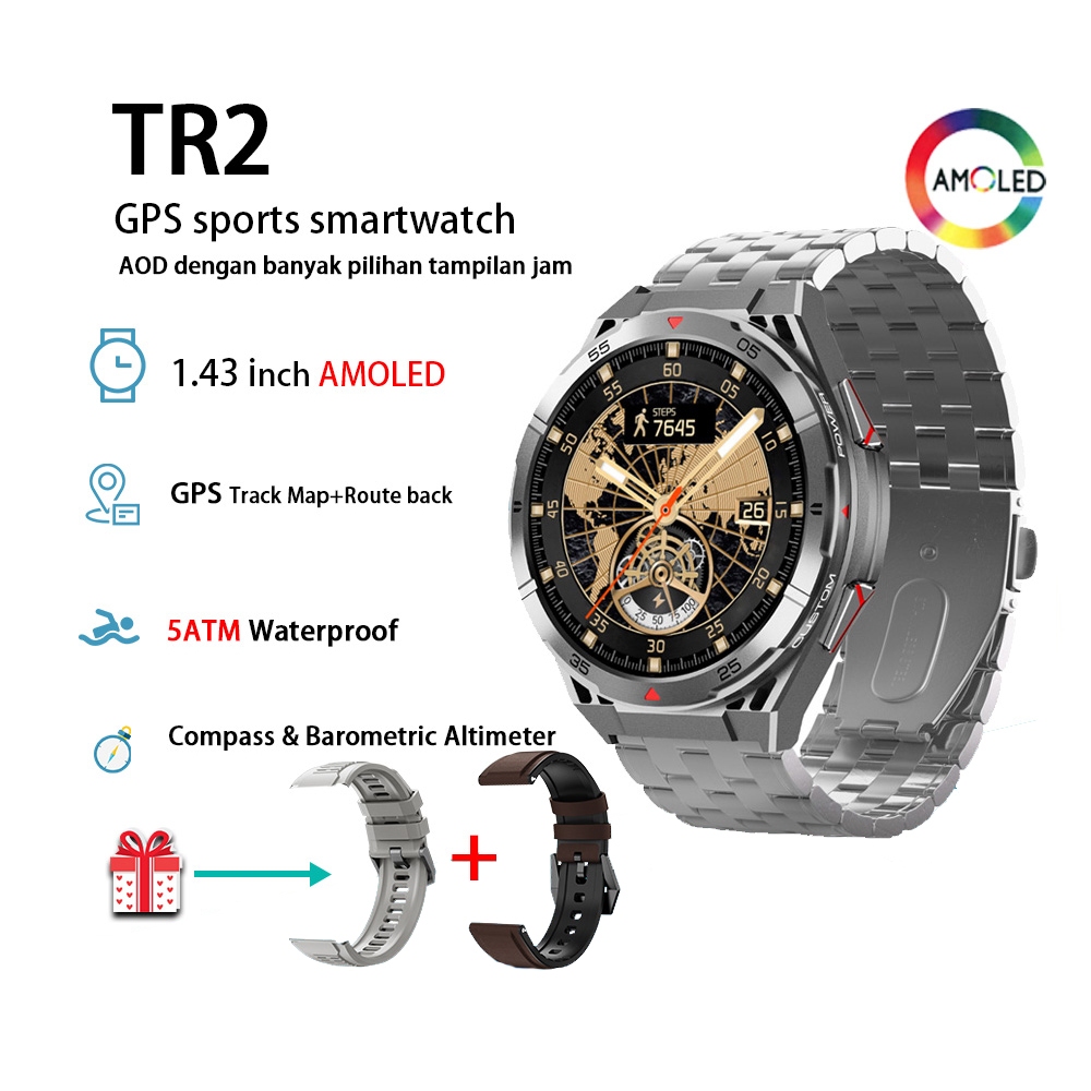 TIMEVER TR2 5ATM Built-in GPS Track Map Route Back AOD jam tangan pintar Pressure Altitude Compass Military Super Smartw