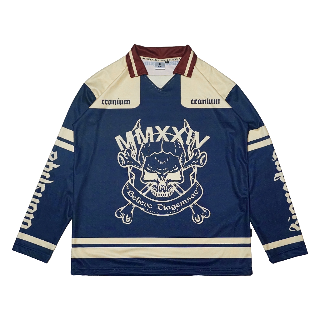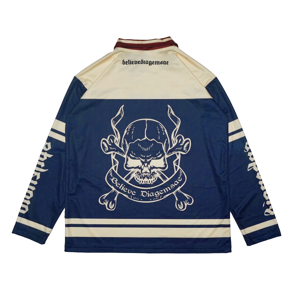 BELIEVEDIAGEMSAE - Oversized Jersey Longsleeve Full Print Skull Navy Cream