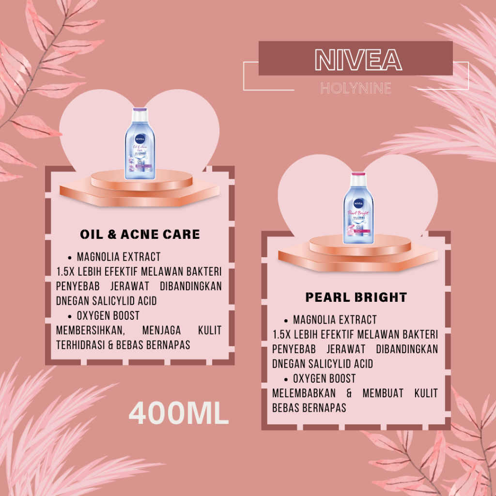 ❤HOLYNINE❤ Nivea Micellar Water 400ml | Oil & Acne Care | Pearl Bright