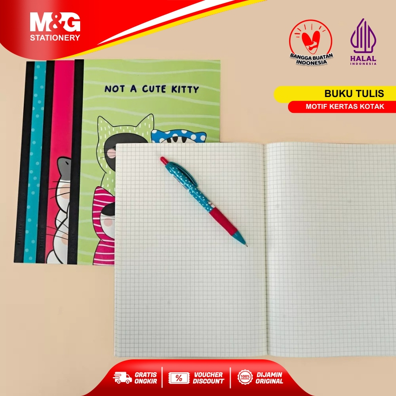 M&G Note Book / Buku Tulis /Buku Catatan Ukuran B5 Motif Kucing Wireless Kotak Kecil 60 & 64 Halaman Cat Pattern Lucu