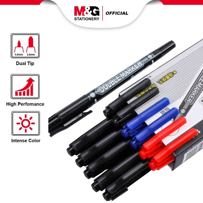M&G Spidol Permanen Double Tip 2 Ujung Ganda Pulpen 0.5 dan 1.0 multicolour Cocok untuk Semua Catatan