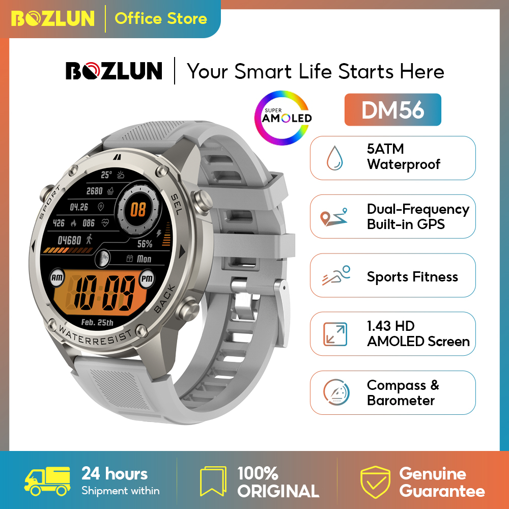 Bozlun Smattwatch 5ATM Waterproof Built-in GPS Smartwatch 500mAh BT Call 1.43" HD Amoled Jam Tangan Pintar DM56