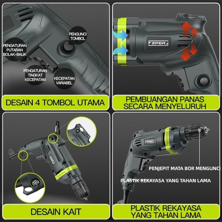 ZPER Mesin Bor Listrik Set Lengkap Bor Tangan Murah Berkualitas Bolak Balik Electric Mata Bor Drill Garansi