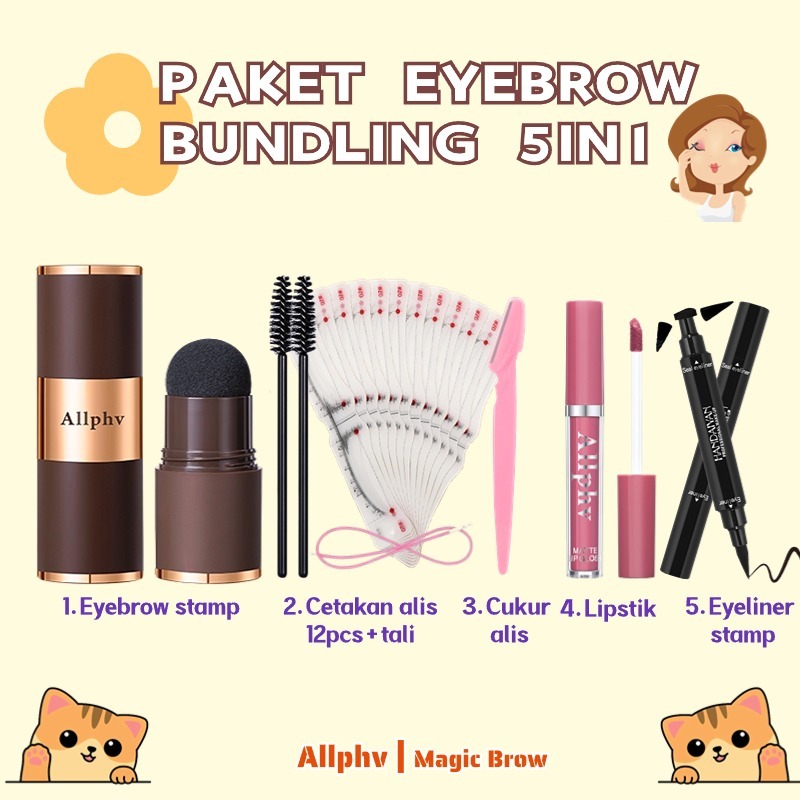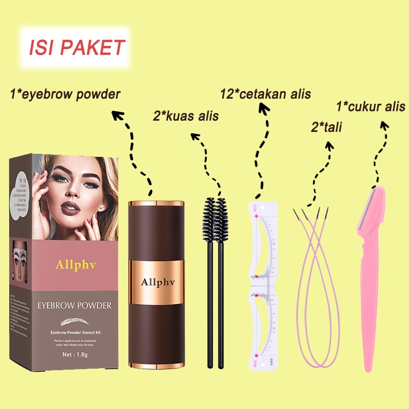 【5in1】Paket Bundling Allphv Eyebrow Cetakan Alis Tali Dan Eyebrow Powder Waterproof dengan 12 Model