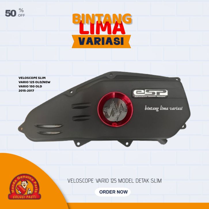 Veloscope Detak Tutup Filter Vario125 /Vario150 Old / Terbaru Model Slim Free Emblem ESP Hitam