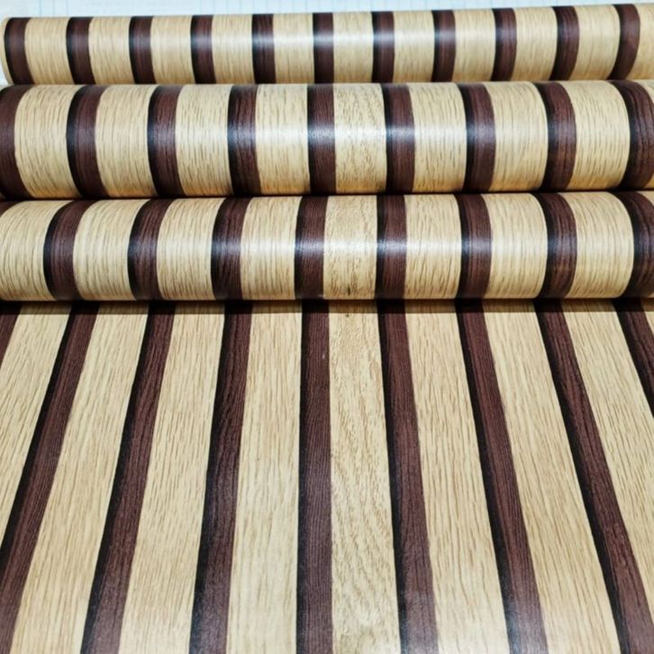 Wallpaper Sticker Dinding Kayu Sticker Dinding Kayu Krem Garis Coklat Mewah Modern Kekinian Premium Internasional