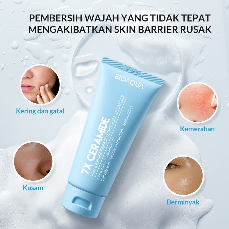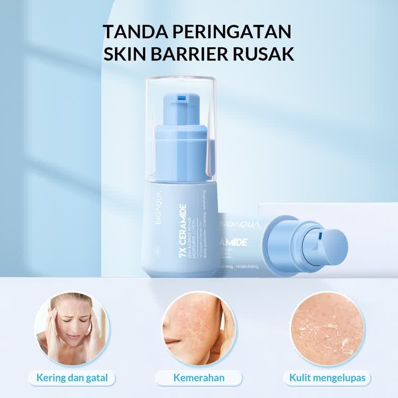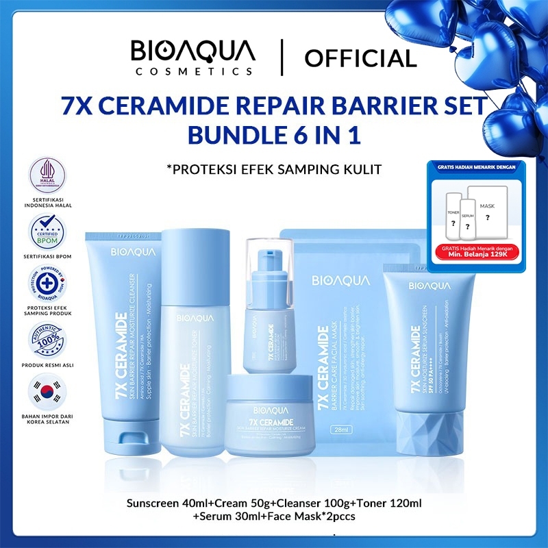 【BPOM】 Bioaqua Cosmetics 7X Ceramide Skin Barrier Repair Moisturizing Skincare Beauty Set(Sunscreen 40ml+Cream 50g+Cleanser 100g+Toner 120ml+Serum 30ml+Face Mask)