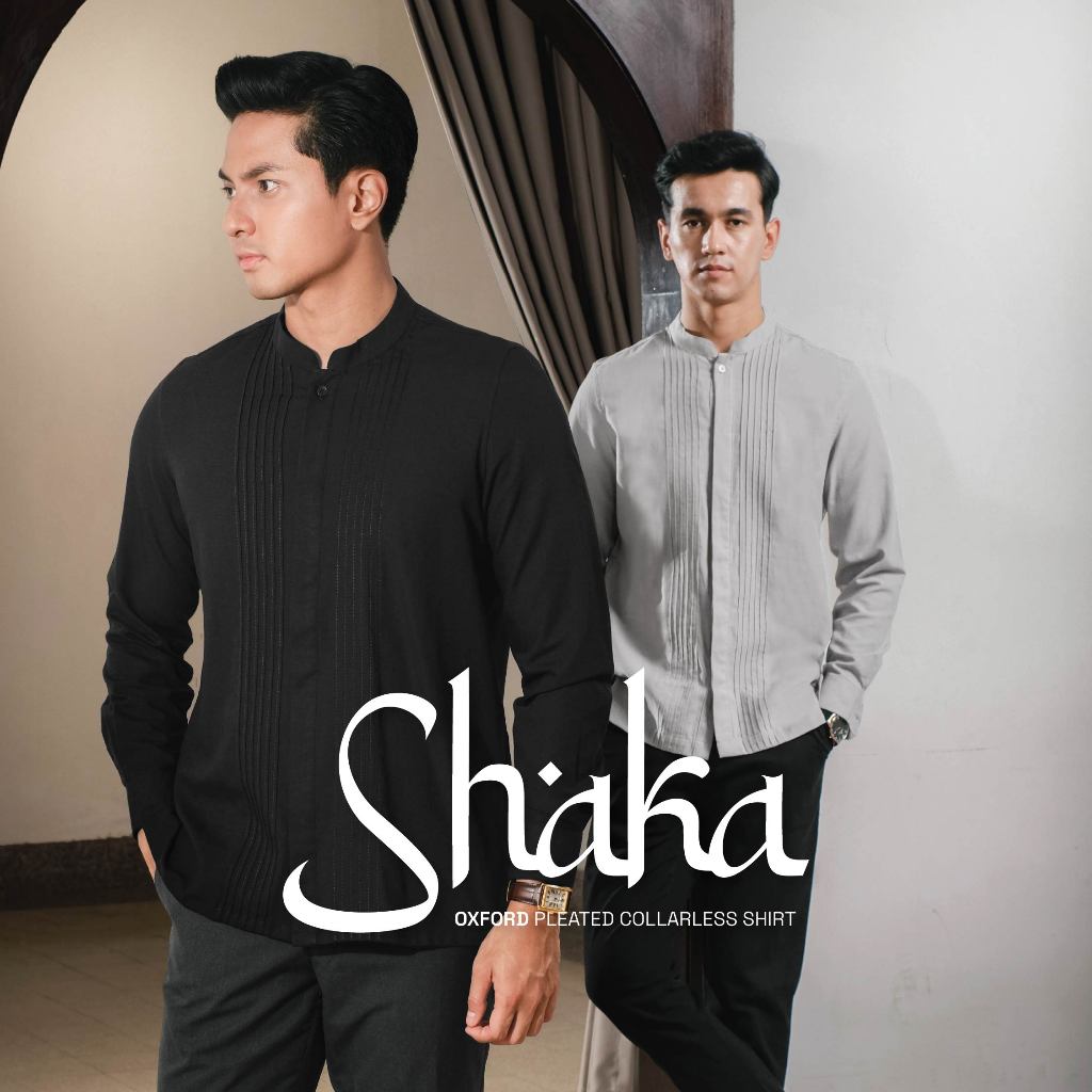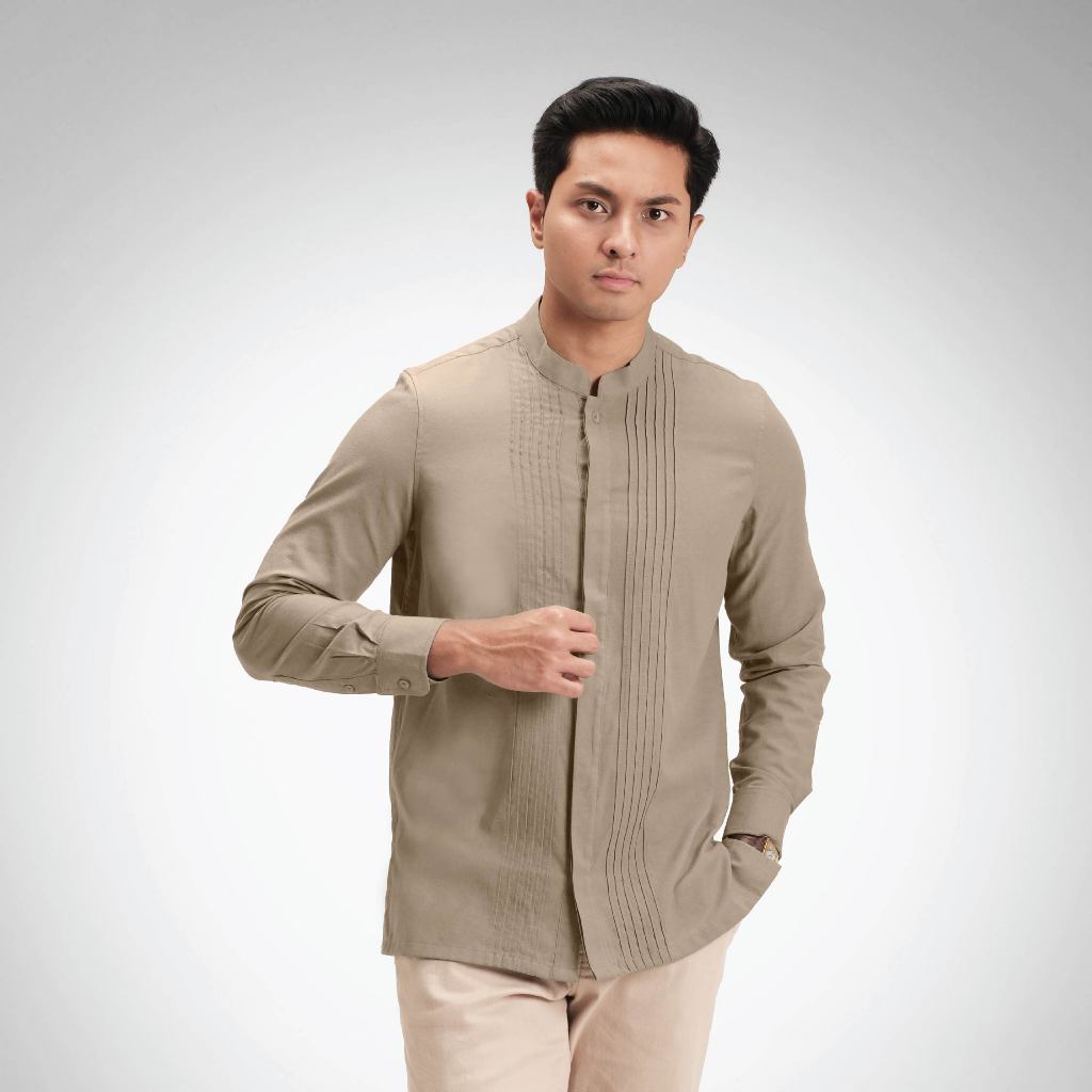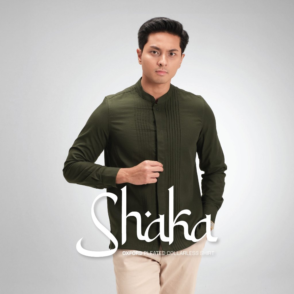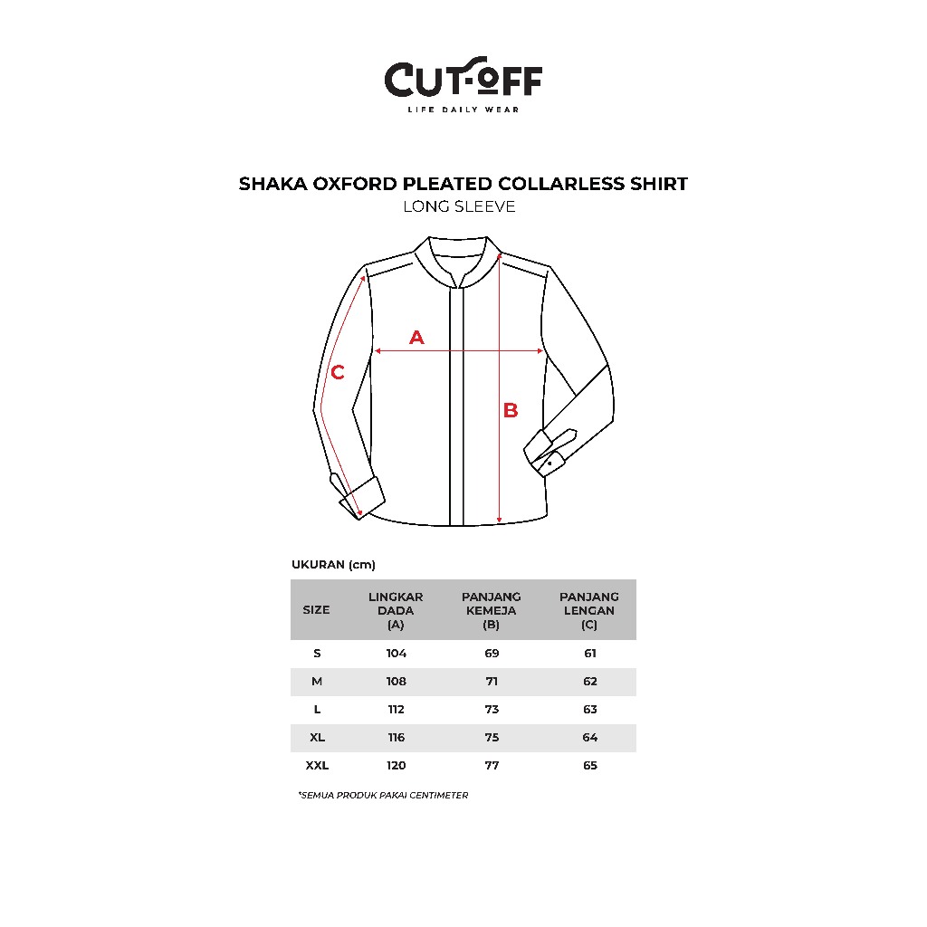 CUTOFF Shaka Oxford Pleated Collarless Shirt Kemeja Koko Pria Lengan Panjang