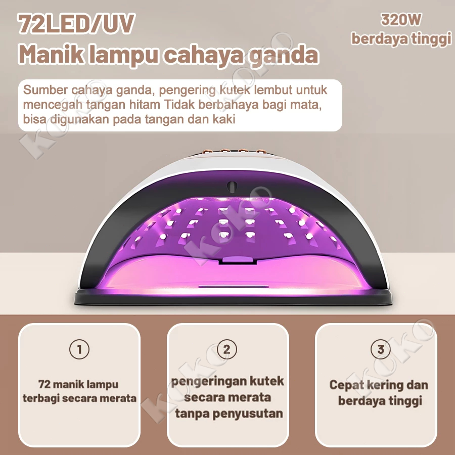 【Penjual Lokal】2024 UV LED Pengering Kutek Nail Dryer 320W 72 LED Portabel Mesin Fototerapi Cahaya Lembut