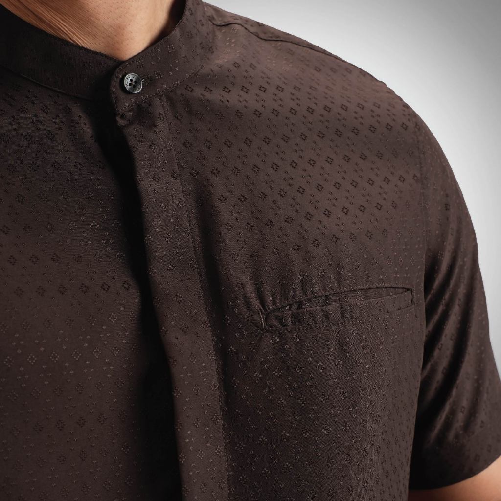 CUTOFF Hussein Dobby Bordir Collarless Shirt Kemeja Koko Pria Motif Lengan Pendek