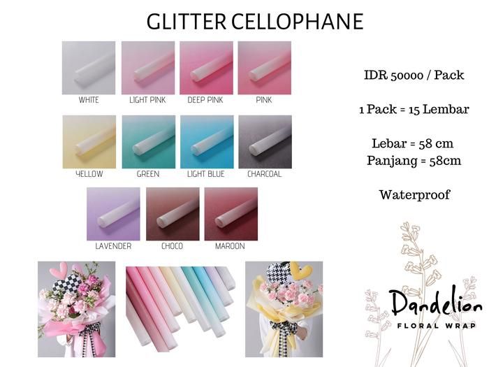 FLOWER WRAPPING GLITTER CELLOPHANE ECER PER WARNA KERTAS BUKET BUNGA - White