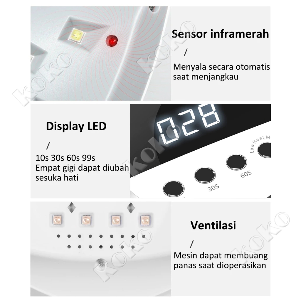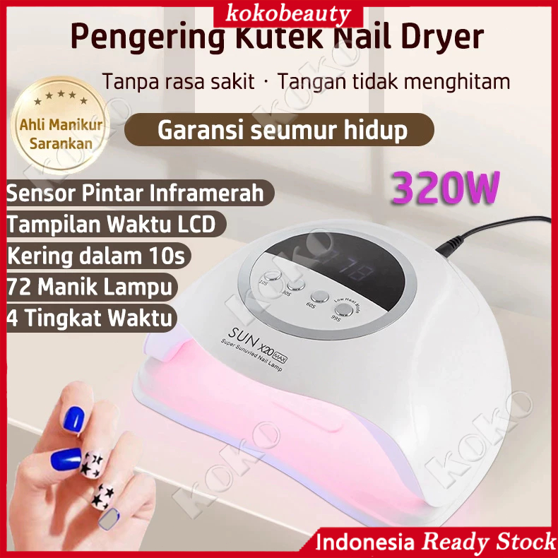 【Penjual Lokal】2024 UV LED Pengering Kutek Nail Dryer 320W 72 LED Portabel Mesin Fototerapi Cahaya Lembut