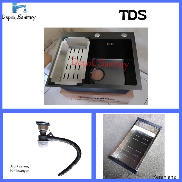 PAKET KITCHEN SINK JKM/INOBE/ISAN/TDS BLACK HITAM 5243 BAK CUCI PIRING STAINLESS HITAM
