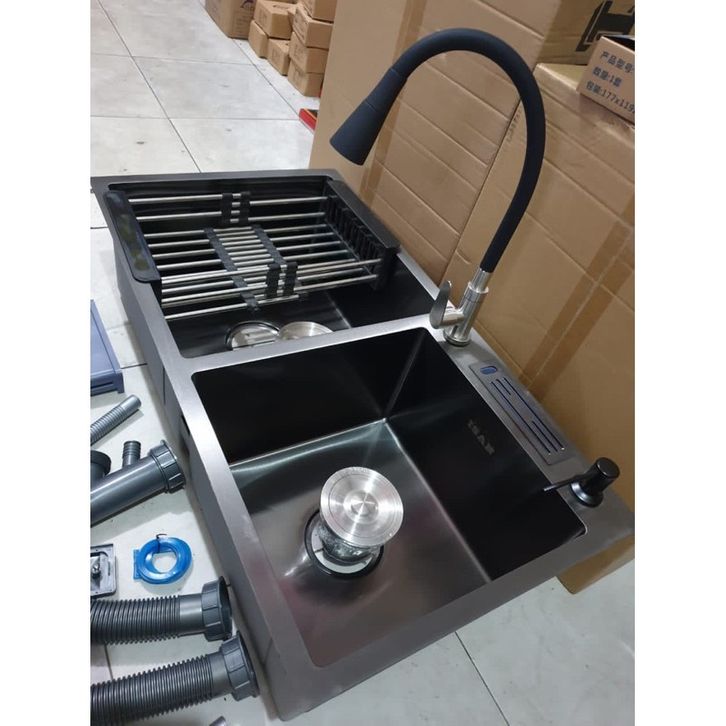 KITCHEN SINK BLACK HITAM 8245 / Wastafel Bak Cuci Piring 2 Lubang Stainless SUS304 tebal 82X45 ANTI KARAT