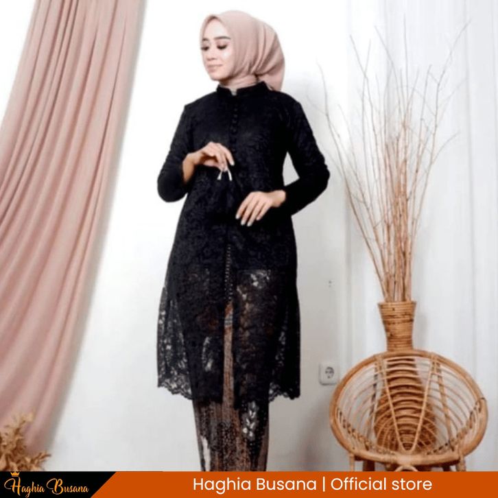 TERLAKU Haghia Busaan - Kebaya Tunik Brokat Busui Lamaran Wisuda dan Pernikahan Kebaya Kancing Depan | Hitam aseks