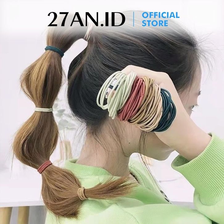 Ikat Rambut H144 Karet Rambut Plus Pouch Warna Polos Gaya Korea / Ikat Rambut Elastis Aksesoris Rambut Wanita