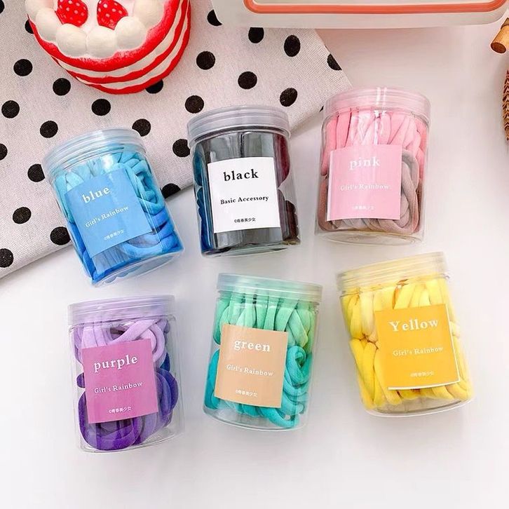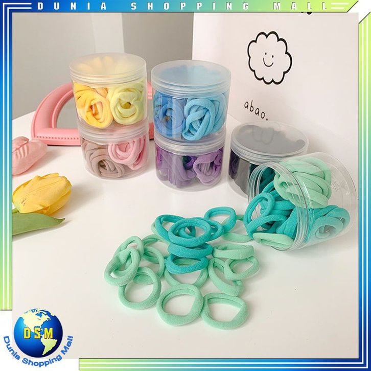 Dsm Ikat Rambut Ponytail Elastis Wanita Motif Polos Kunciran Rambut Gaya Korea Isi 50Pcs Free Tabung