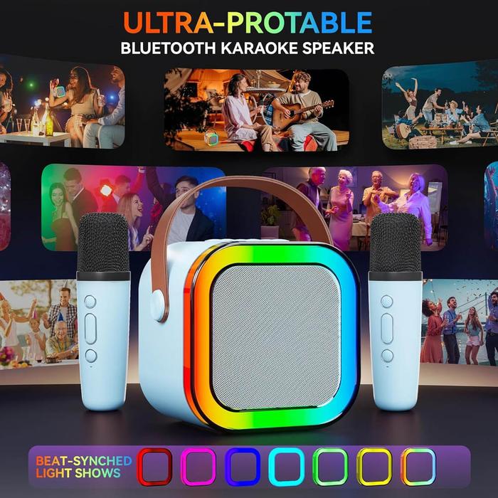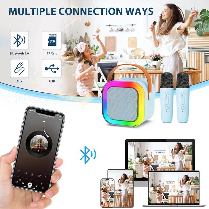 Mini Speaker Wireless Karaoke Speaker Portable MP3 Player dengan 1 buah mic K12 - MIC 1 BIRU